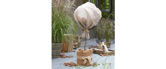 am Kronenansatz und muss besonders geschützt werden. Diese mit Holzwolle oder Stroh schützen, ein paar Zweige Tannenreisig in die Krone stecken und die Krone mit luftdurchlässigem Vlies (keine Folie!) einpacken.