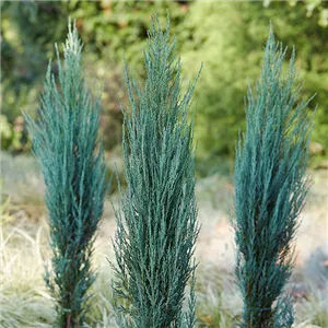 • Eine immergrüne und ganzjährig schöne Kulisse schaffen Koniferen wie Säulen-Eiben oder Raketen-Wacholder, die langsam wachsen und sich nicht seitlich ausbreiten. Eine kugelförmige Stechpalme bietet sich als Alternative mit Blättern an. Bei allen drei Gehölzen müssen Sie nur selten zu Schere oder Besen greifen.